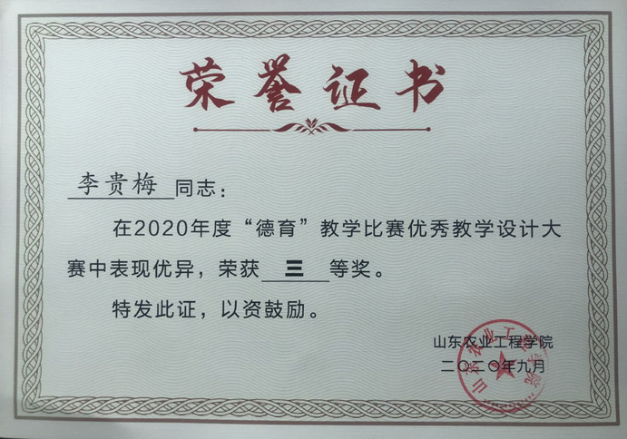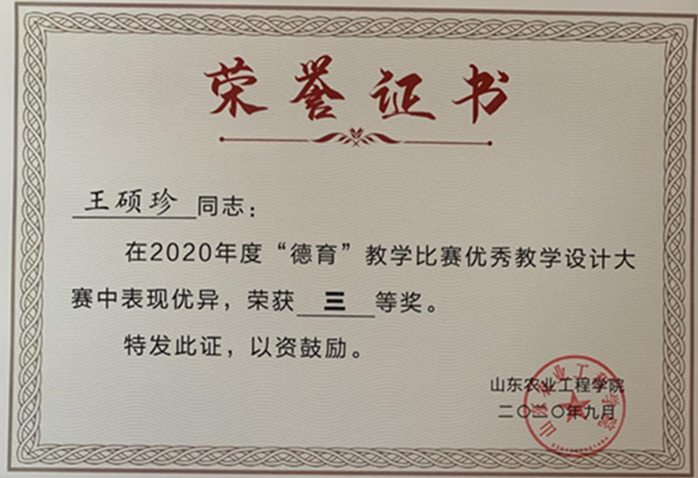 近日,在学校举办的“德育”教学比赛中,经管学院喜获佳绩,陈岱莲、李娜、苗文娟、王硕珍、李贵梅、蔡霞等6位教师荣获二等奖、三等奖。