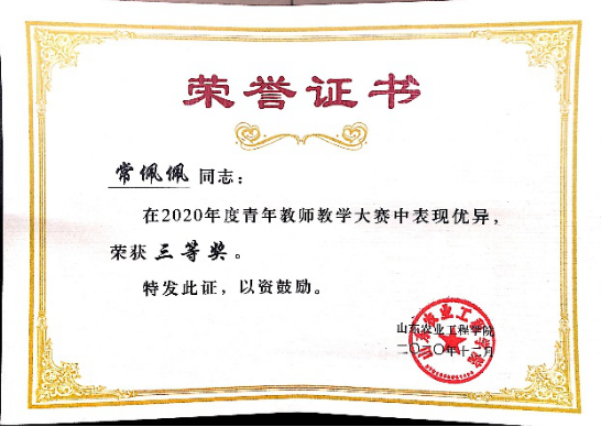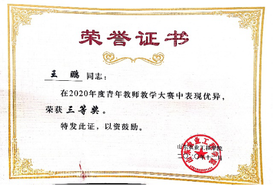 近日,学校公布了2020年青年教师教学大赛成绩,我院王鹏、常佩佩老师荣获三等奖。