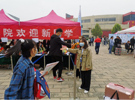 学院安装了简洁醒目的专业报到指示牌,学生志愿者们在报到点各路口值守,随时为新生答疑指路。
