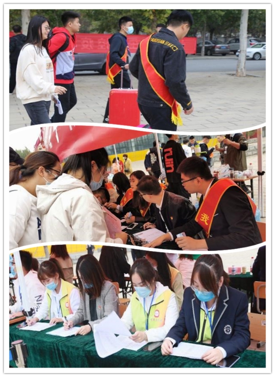 大刀阔斧工程处,功期收尾快乐数。由于疫情影响,新生推迟开学,所以这次迎新时间紧,任务重。迎新志愿者们从早上6点开始忙碌,直到下午4点新生报到工作圆满结束,在此期间克服重重困难,顺利完成迎新工作。经济管理学院教师及志愿者们的热情服务得到了新生和家长们的肯定与赞扬。