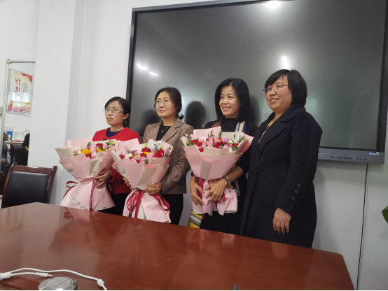 首先,李百秀院长向获得学校优秀班主任(学业导师)的刘春英、任美霞、常佩佩老师颁发了鲜花,并祝贺她们被评为学校优秀班主任(学业导师)。