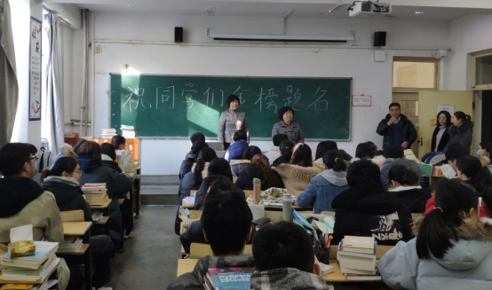 2020年12月24日下午、25日上午,经济管理学院在北2教530教室和济南校区317教室举行决战考研动员大会,学院党总支书记颜素杰、院长李百秀、副书记杜锋、副院长曲文俏、团总支书记周海霞、政治辅导员李娜、王太然、靖荣文参加了动员大会。