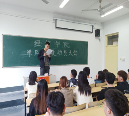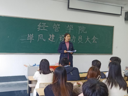 4月12日下午,在1号教学楼308教室,我院召开济南校区学风建设动员大会,我院团总支书记周海霞、辅导员靖荣文老师以及济南校区各班班委参会。