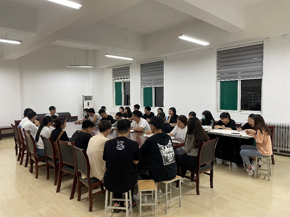 8月29日,经济管理学院于齐河校区二号教学楼五楼会议室召开2021级迎新准备工作会议。辅导员曹奇、李娜、王太然老师及学生会全体成员参加会议。