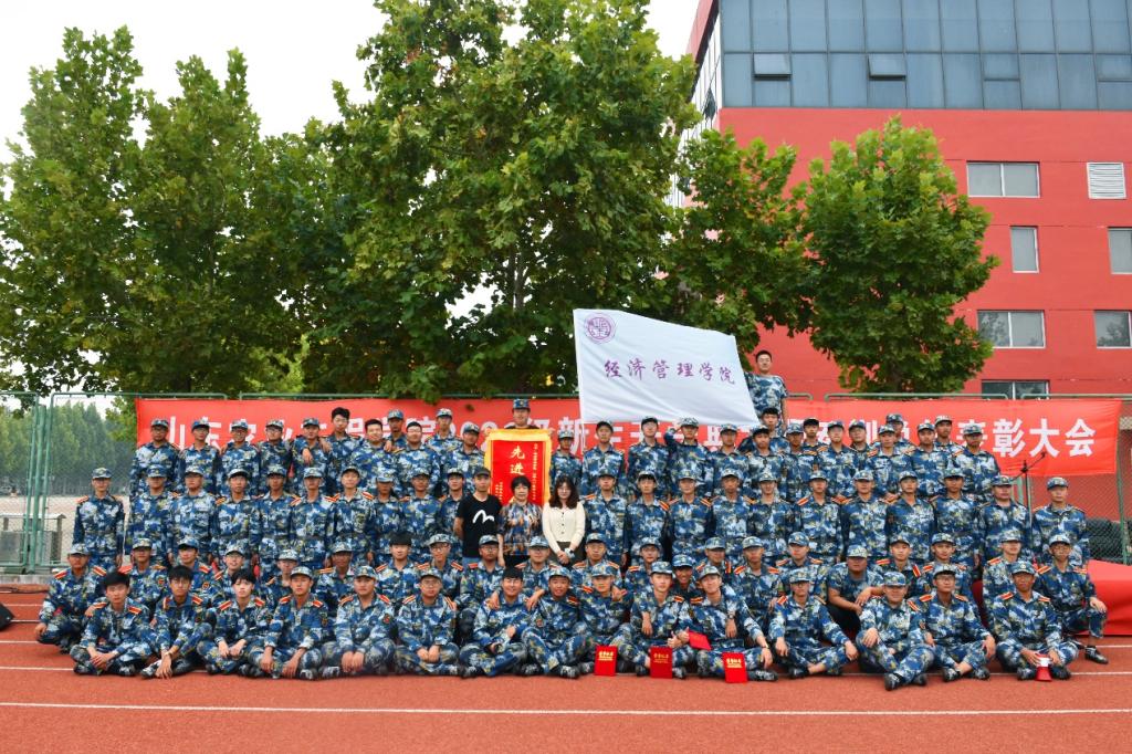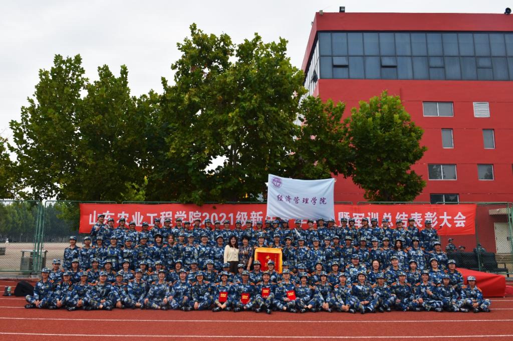 9月18日,在必赢2021级新生开学典礼暨军训总结表彰大会上,经济管理学院荣获军训先进集体荣誉称号,校党委书记丁希滨亲自为获奖单位颁奖。