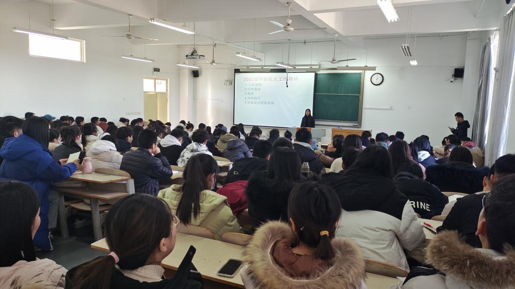 李英杰老师从毕业论文(设计)写作的规范与技巧等方面对同学们进行了专业培训。她向同学们详细介绍了毕业论文(设计)结构及摘要、研究背景、研究目的与意义、结论与展望等各部分的撰写技巧,也为同学们讲解了毕业论文(设计)的查重要求及注意事项等。