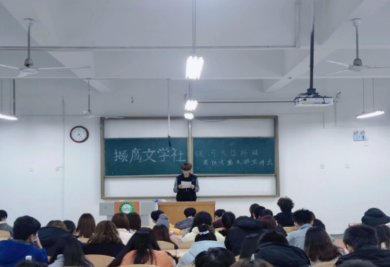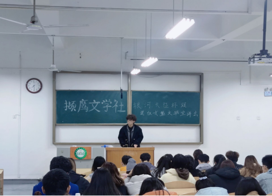 2021年11月28日,由校团委主办、撷鹰文学社承办的文学宣讲会在齐河校区二号教学楼3-4举行。此次活动旨在进一步宣传和贯彻习近平新时代中国特色社会主义思想,培养当代大学生的爱国情操,提升大学生的文学素养和能力。