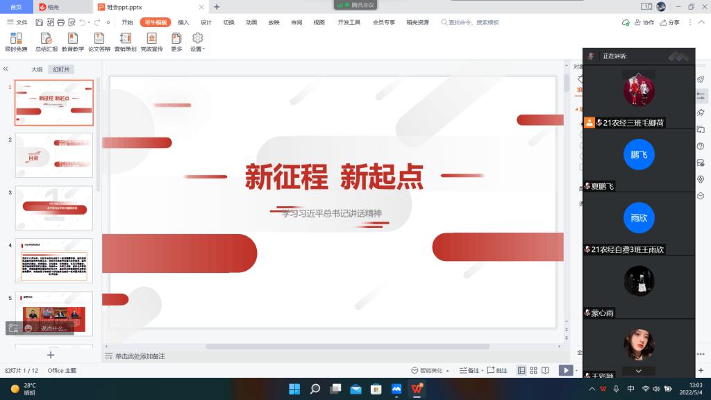 经济管理学院各班在线上组织召开“争做堪当民族复兴重任的时代新人”主题班会。习近平总书记的一番话掷地有声,回荡在经管学子的耳边。经管学子们纷纷表示定不会辜负祖国的重托,努力奋斗,牢记使命。