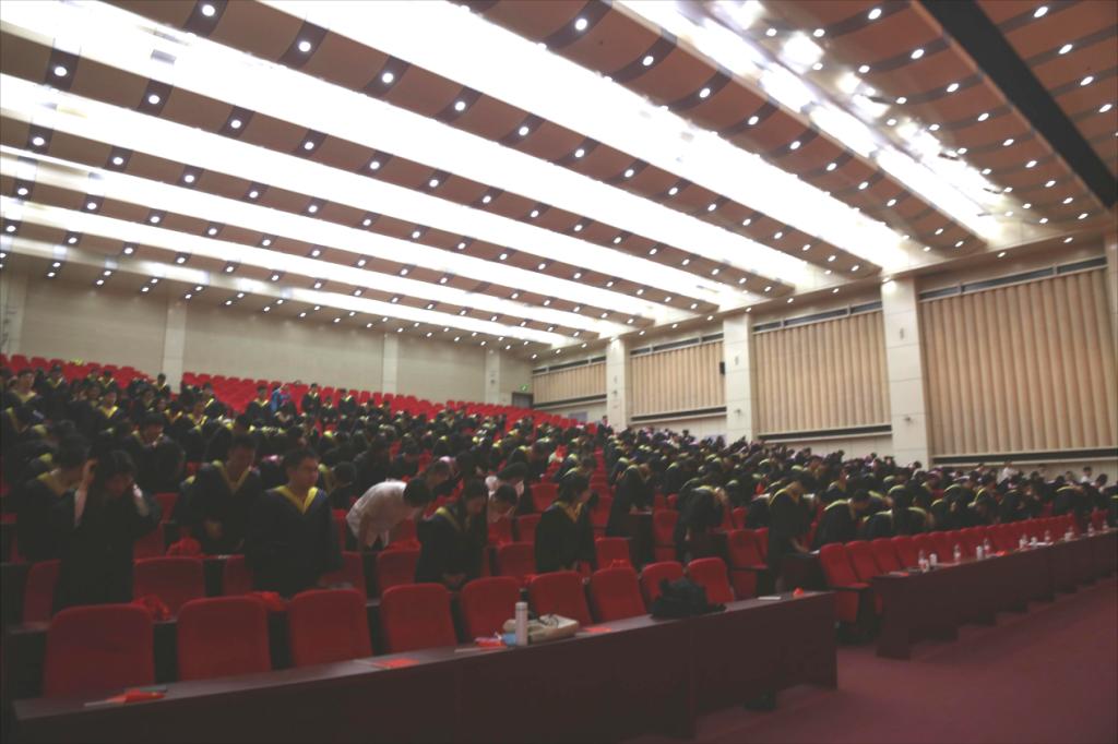 学位授予后,全体毕业生起立向台上各位导师行谢师礼。