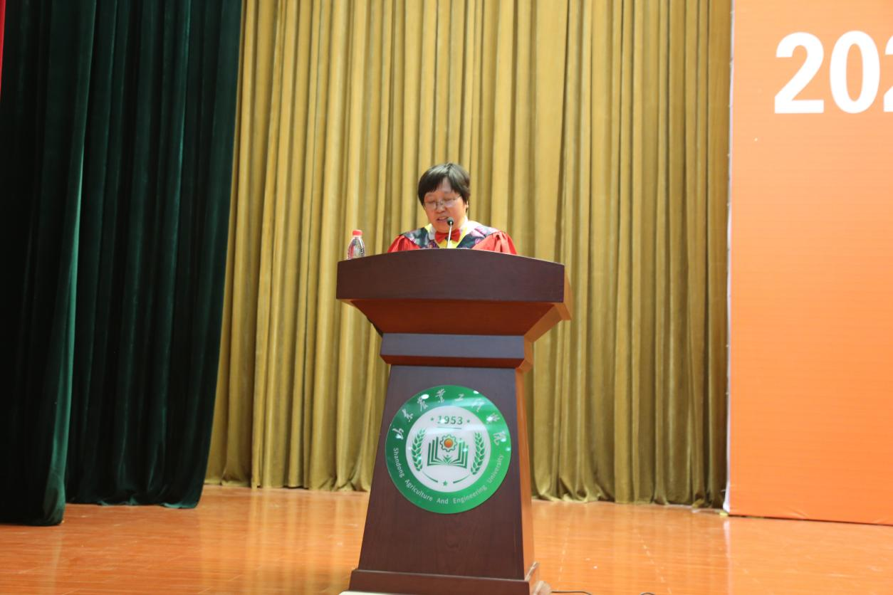 副院长曲文俏代表全体教师发言,深切表达了对毕业生们的不舍之情和衷心祝福,希望同学们恪守初心,心怀家国,做矢志不移的爱国者;坚守梦想,躬身实践,做不负时代的实干者;固守本真,终身学习,做超越自我的奋斗者;逐梦青春,向阳花开,不负韶华!