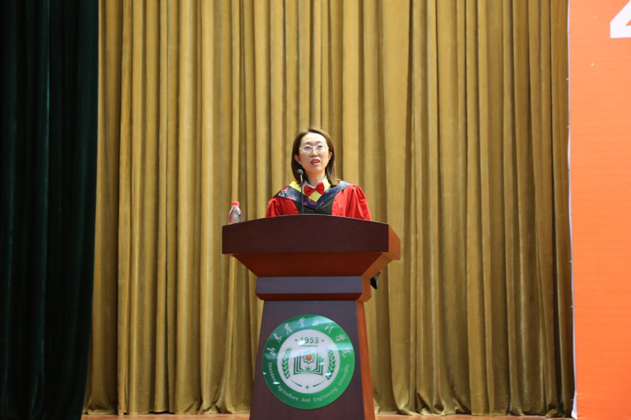 院长李百秀在致辞中向2022届毕业生圆满完成学业踏上新征程表达了祝贺,深情回顾了毕业生为母校建设发展作出的努力和取得的可喜成绩,并勉励毕业生们继续笃行奋进、追梦前行,带着母校的希望,一路披荆斩棘、乘风破浪。