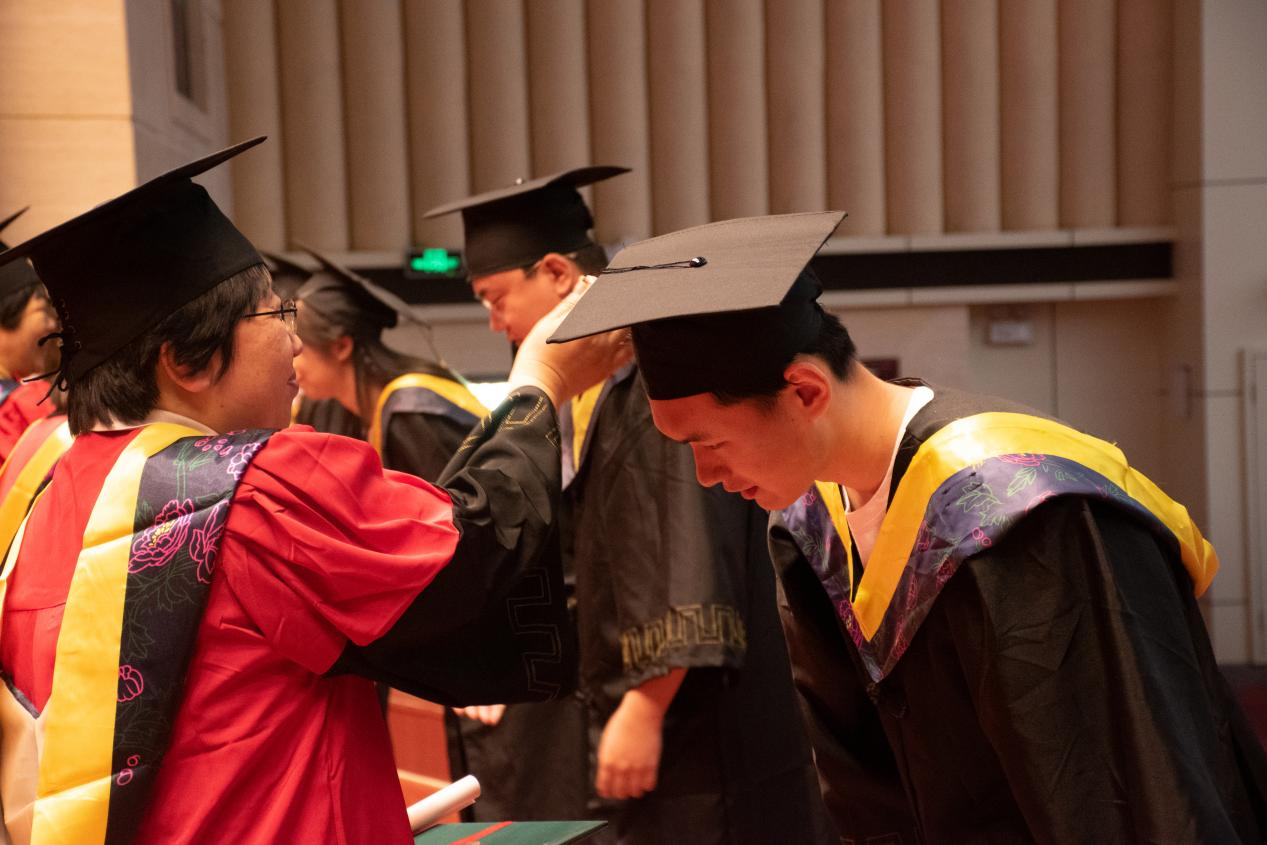校学位委员会副主席杨玖庆为授学位者拨穗