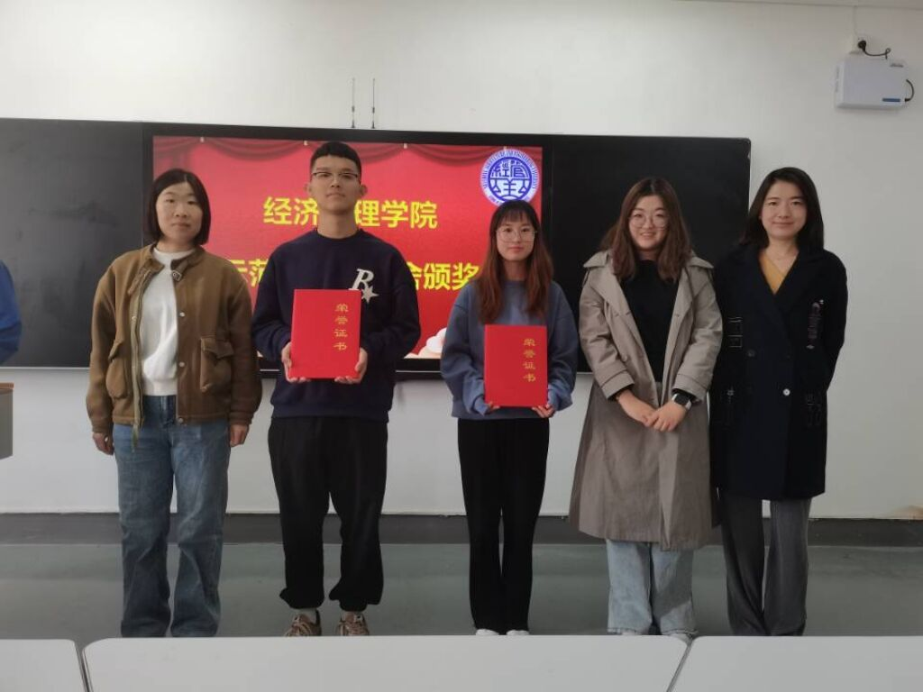 周海霞老师为学风示范班级20级农林经济管理公费二班、20级经济信息管理二班颁发荣誉证书。