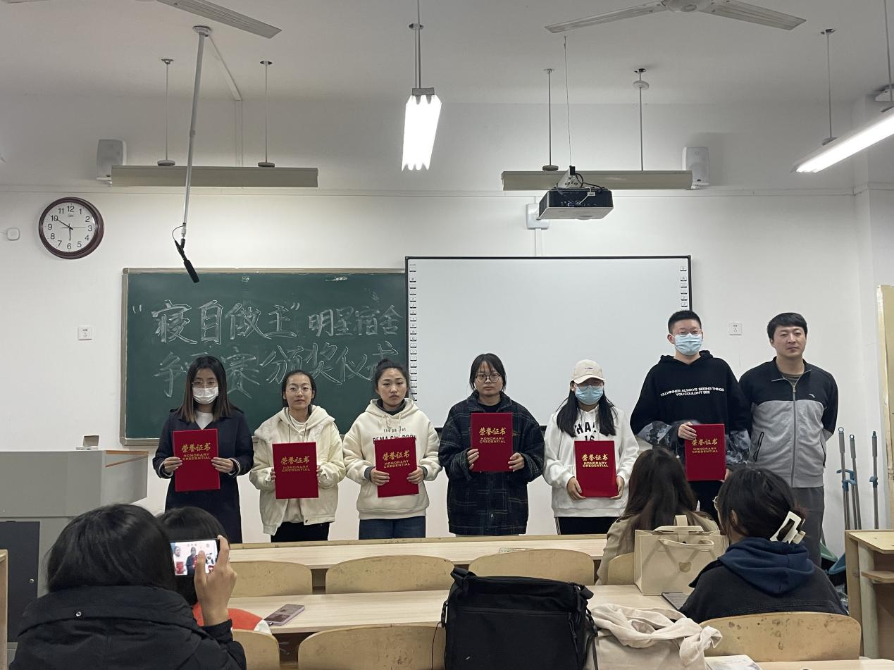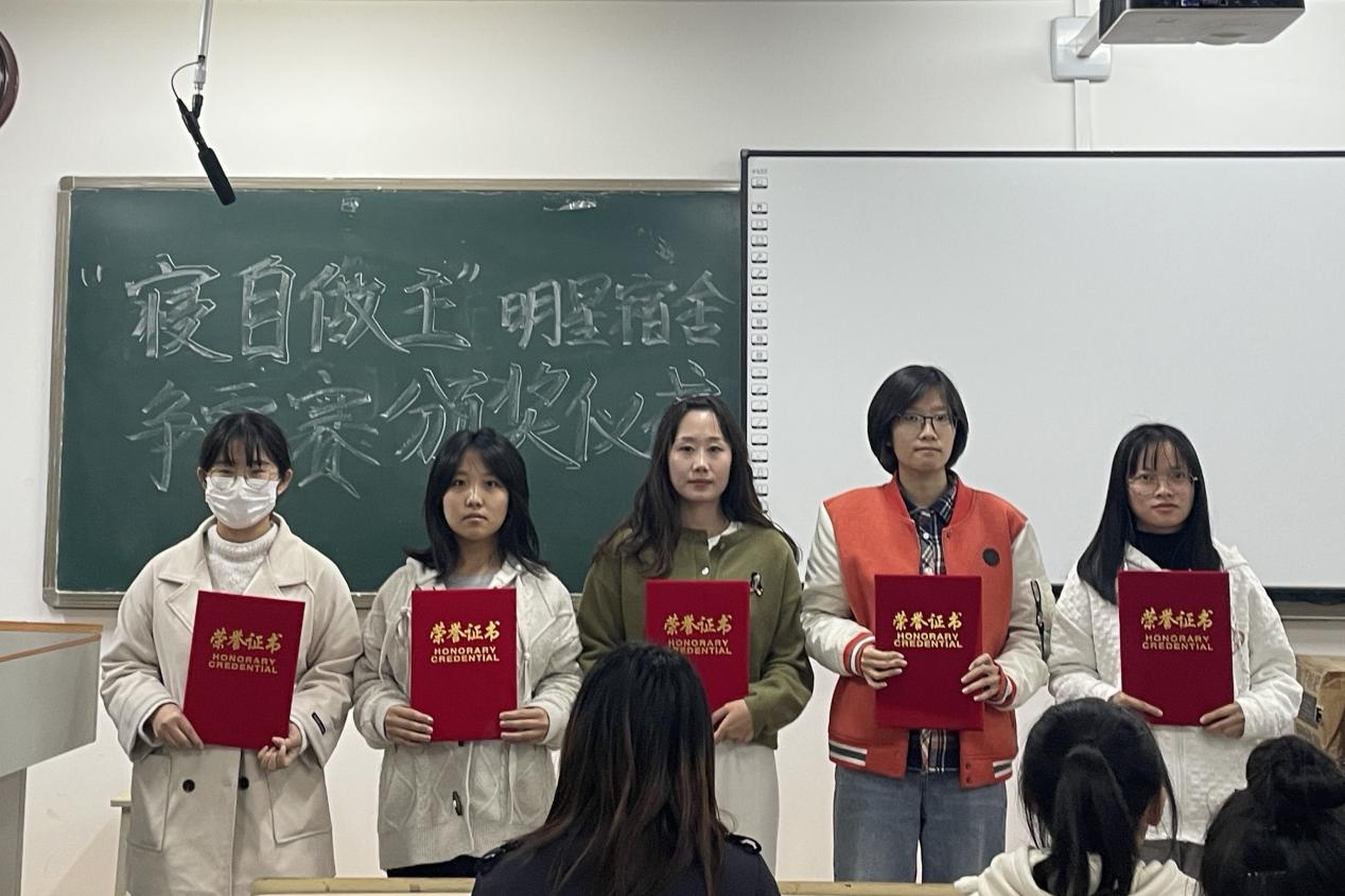 王太然老师表示:“大家的参赛作品内容新颖、各有特点,希望获奖宿舍再接再厉,在以后的学习生活中再创佳绩!”随后获奖宿舍代表依次上台领奖并合影留念。