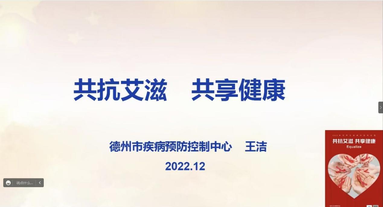 12月11日,我院青春健康同伴社通过线上讲座的方式举办“共抗艾滋,共享健康”主题讲座,本次讲座邀请德州市疾病预防控制中心性病与艾滋病防制科科长、主任医师王洁为必赢师生讲解艾滋病相关知识。