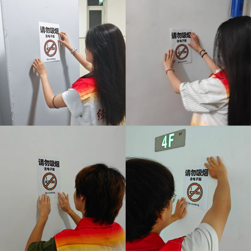 活动当天,志愿者们携带禁烟标识,分组走进宿舍楼,在入口、拐角等醒目位置张贴禁烟标识。这些标识不仅是一种提醒,更传递了对健康的重视,消除安全隐患。此外,学院还开展了禁烟宣讲活动,通过真实案例和互动交流,向同学们讲解吸烟的危害及二手烟的影响,倡导健康的生活方式,为创建无烟校园营造了良好氛围。
