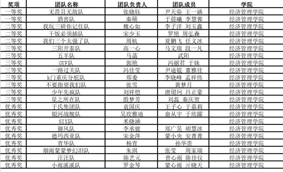 本次大赛共有149支队伍450余名学生参加,经过激烈角逐,最终经管学院两支队伍荣获一等奖,三支队伍荣获二等奖,八支队伍荣获三等奖,九支队伍荣获优秀奖。