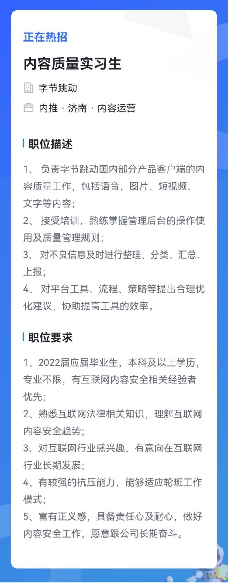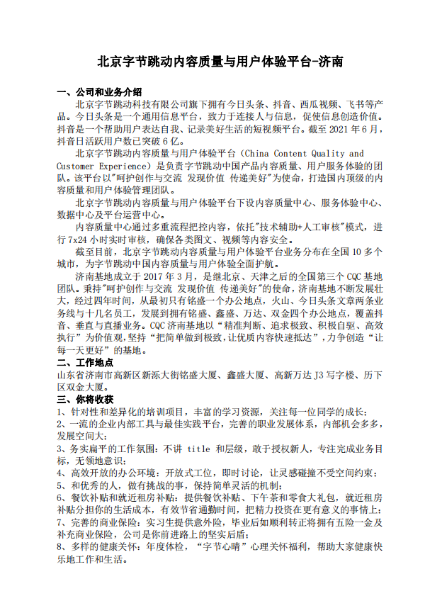 北京字节跳动内容质量与用户体验平台——济南