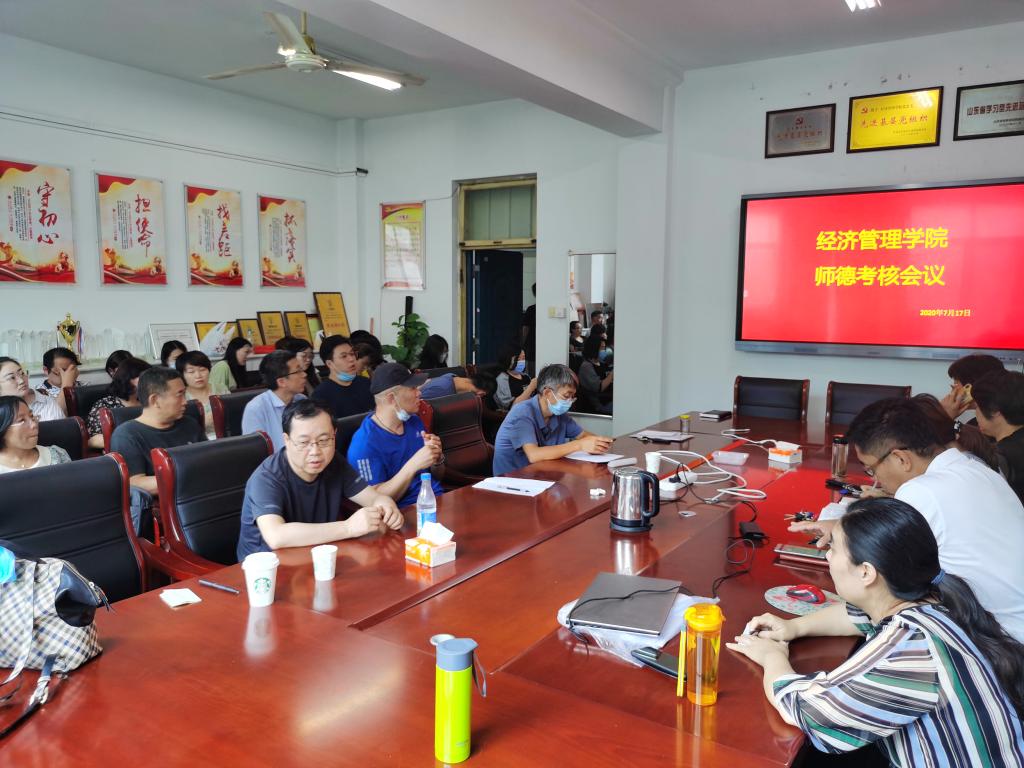 7月17日下午,经济管理学院在济南校区党建办公室召开了2019-2020学年师德考核暨评优工作会议,会议由院长李百秀主持,全体教职工参加会议。