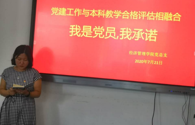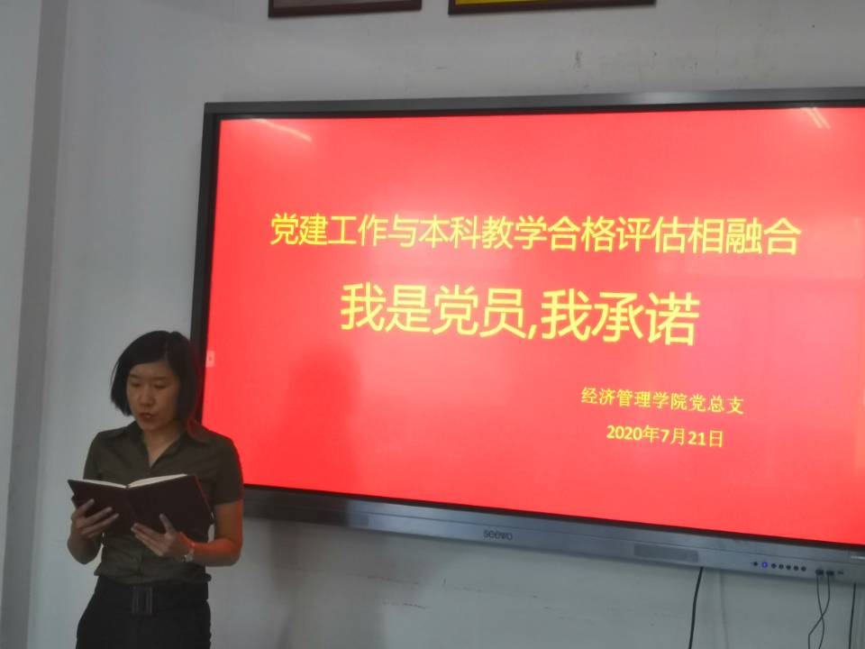 7月21日上午,经管学院党总支开展“我是党员,我承诺”主题党日活动。活动旨在针对学校首轮本科教学工作合格预评估发现的问题,在整改工作中党员同志应该怎样做作出承诺。校党委委员、副校长张伟出席主题党日活动并讲话,活动由党总支书记颜素杰主持,全体党员和入党积极分子作出庄严承诺。
