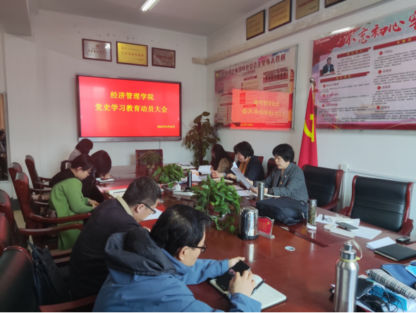 3月25日下午,经济管理学院党总支在1号教学楼党建活动室召开党史学习教育动员大会,对党史学习教育进行动员部署。全体党员参加会议,会议由党总支书记颜素杰主持。
