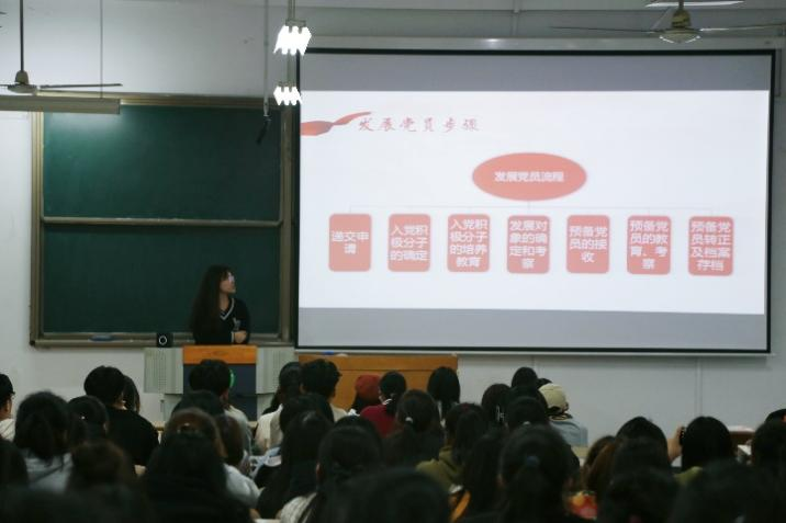 为提高支部成员学习党史的积极性和主动性,领悟党的方针、坚定党的信念,增强对党的认同感与归属感,经济管理学院学生第二党支部开展“学生党员分享交流”活动。10月14日,在齐河校区1-1教室进行第一讲,主题为“入党流程学习”,由学生党员李慧蓉同志担任主讲人。