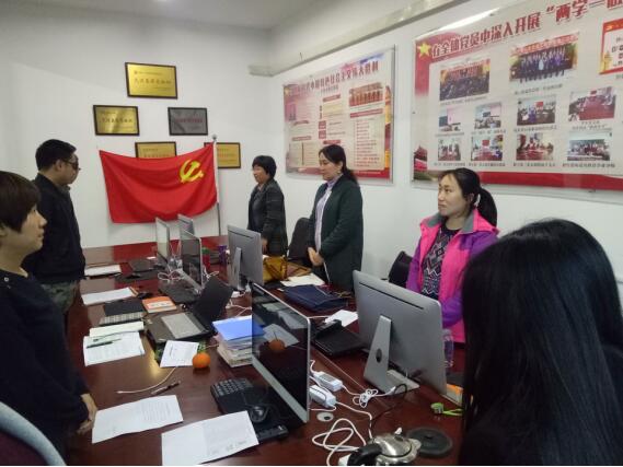 1130日下午,经管学院教工第一党支部党员在济南校区1号教学楼311室开展主题党日活动:党员纳新。会议由党支部书记赵宏同志主持,支部全体党员参加。党总支副书记李百秀同志对加入党组织的李飞同志表示热烈祝贺,并指出不仅要在思想上入党,更要在行动上入党,在平时的学习和生活中,严格要求自己,发挥党员的先锋模范作用。