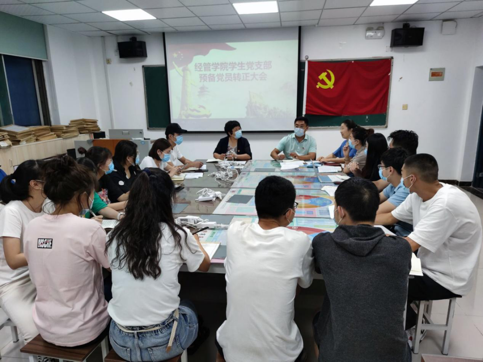 为热烈庆祝中国共产党成立99周年,更好教育引导学生党员牢记初心使命,坚定理想信念,发扬实干精神,6月30日下午,经济管理学院学生党支部开展主题党日活动:预备党员转正大会。此次大会,既是一次预备党员转正会,又是一堂全面加强党建工作的主题教育课。