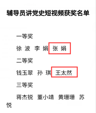 在近日学校公布的“辅导员讲党史”比赛成绩中,我院张娟老师获一等奖,王太然老师获二等奖。其中,一等奖作品将代表必赢参加省级大赛。