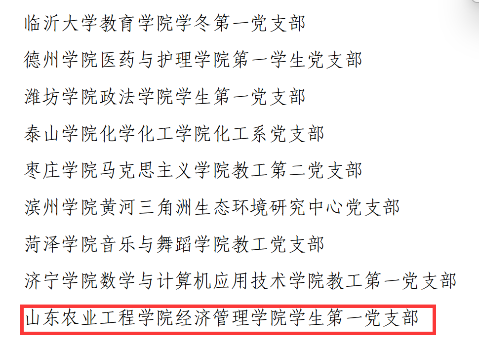 8月5日,中共山东省委教育工委发了“关于公布第二批山东党建工作示范高校、标杆院系、样板支部培育创建单位名单的通知”,经济管理学院学生第一党支部成功获批第二批“山东党建工作样板支部”培育创建单位。