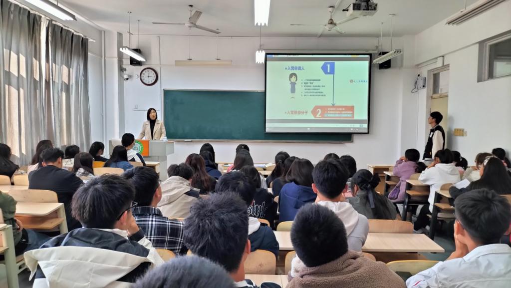 2022年10月11日、12日分别在齐河校区526教室、509教室,经管学院学生第一党支部书记周海霞围绕着入党教育为2022级新生上了一堂党课。