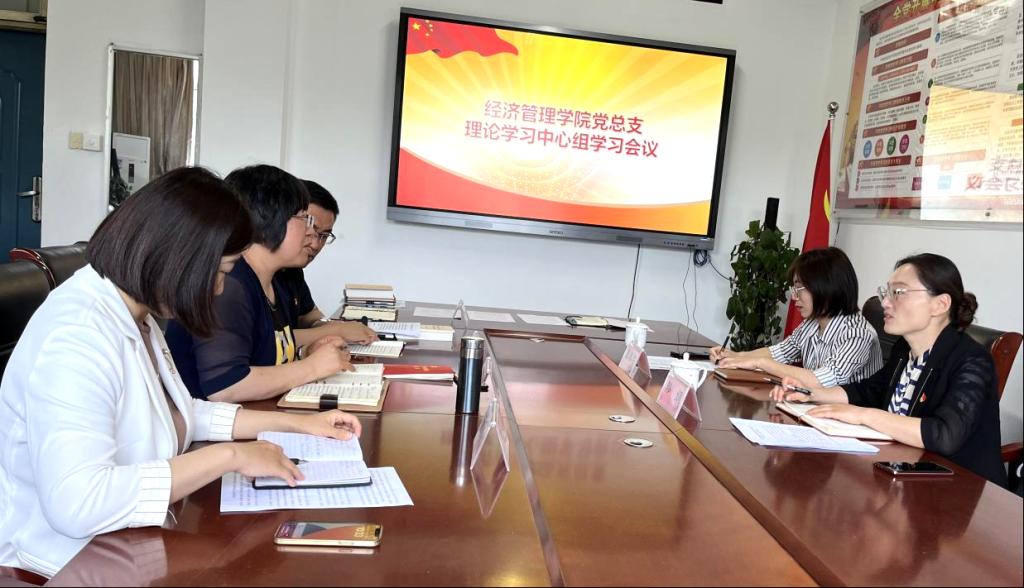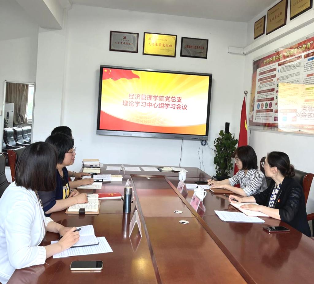 5月25日上午,经济管理学院党总支在济南校区1号教学楼党建活动室召开理论学习中心组会议,校党委委员、组织部部长、校党委列席旁听工作组(六组)组长韩娟莅临我院旁听会议,并做指导讲话,工作组成员、党委(学院)办公室机要科科长张春阳陪同旁听。学院党政领导班子成员参加会议。学院党总支副书记、院长李百秀主持会议。