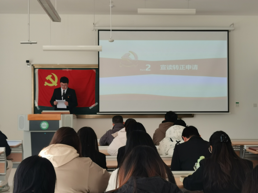 会议严格按照预备党员转正的组织程序规范进行。在会议开始前,全体与会人员集体起立奏唱国歌。随后,大会进入预备党员的转正环节。预备党员们逐一上台宣读转正申请,汇报自己在预备期的表现和思想动态。他们坦诚地分享了自己的成长和收获,同时也深刻剖析了自身的不足之处,表达了今后努力的方向。