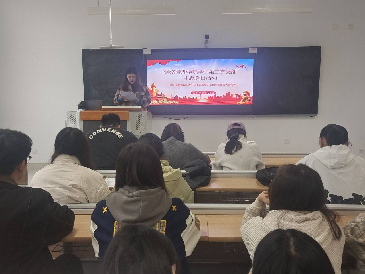 为深刻领会和贯彻习近平总书记在全国教育大会发表的重要讲话和大会精神,不断激发教育事业活力,经济管理学院学生第二党支部于2024年10月22日开展了《学习宣传贯彻习近平总书记重要讲话和全国教育大会精神》主题党日活动。本次活动由张娟老师主持,经济管理学院学生第二党支部全体党员参加。