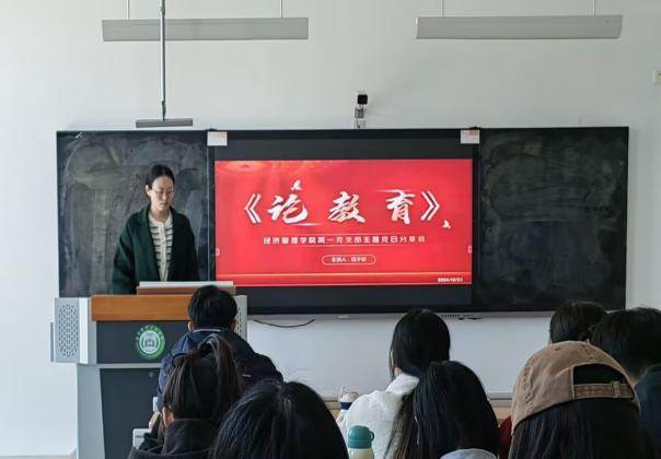 2024年10月24日经济管理学院学生第一党支部开展“学党知,忆党史”系列活动的第七期分享会,本次分享活动以“学习《论教育》重要精神,共筑教育强国梦想”为主题,旨在深化党员对教育领域的国家政策与战略导向的理解。会上,徐子媛和李抒函两位同志围绕《论教育》进行深入的学习分享,激发了与会党员的热烈讨论与思考。