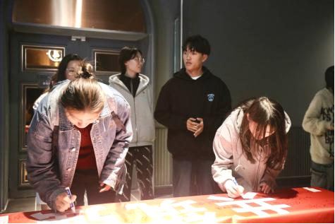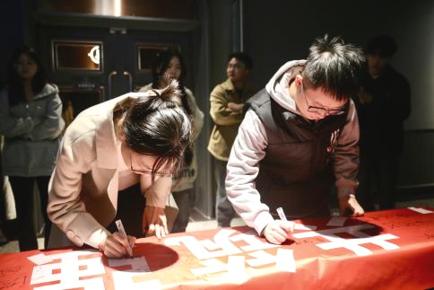 观影前,学生第一党支部全体党员在活动主题横幅上,郑重签下自己的名字,以此表达对革命先烈的深切缅怀与对建设强大国家的坚定信念。