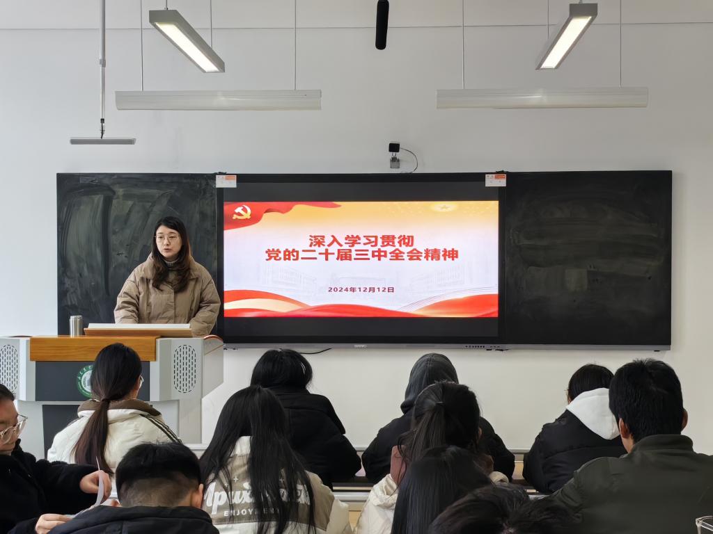 会议伊始,我院学生第二党支部副书记张娟介绍本次大会党员出席情况,并介绍会议流程,全体参会同志起立齐唱国歌。之后,张娟同志带领大家深入学习贯彻党的二十届三中全会精神,深入理解每项改革举措的指向和内涵,站在推进中国式现代化的战略全局高度,正确认识改革的谋篇布局,把握各项改革举措的来龙去脉。