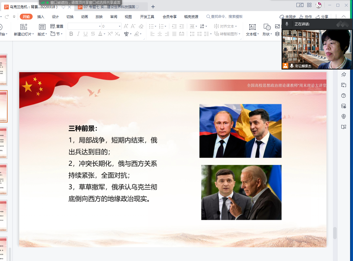 2022年11月30日晚上,经纬讲坛第八十二讲开讲,经管学院党总支书记颜素杰为2020级物流信息管理专业、经济信息管理专业、金融工程专业213名学生讲了一堂线上形势政策课:乌克兰危机:背景 缘起与大国博弈。