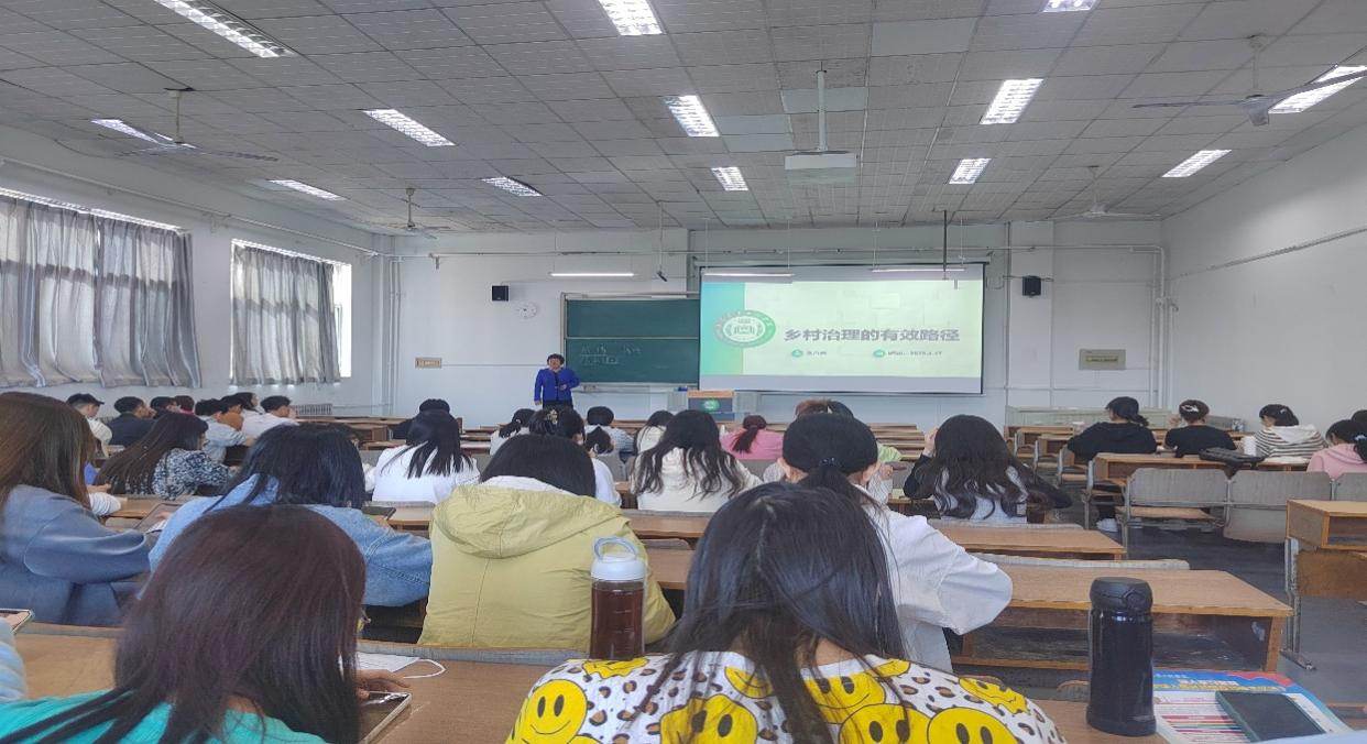 讲座分为乡村治理的背景、乡村治理的有效路径、乡村有效治理案例三个部分。李百秀教授结合同学们学过的三农知识,在深入调研的基础上为同学们梳理了乡村治理的政策、路径及治理成效。特别是在案例解读的过程中,为同学们突出展现了现代乡村治理中党建引领、能人带动及外来资源引进在乡村治理中的重要作用,强调了科技赋能及校地对接是乡村持续治理的有效路径,人才的培育与引进是乡村有效治理的关键。