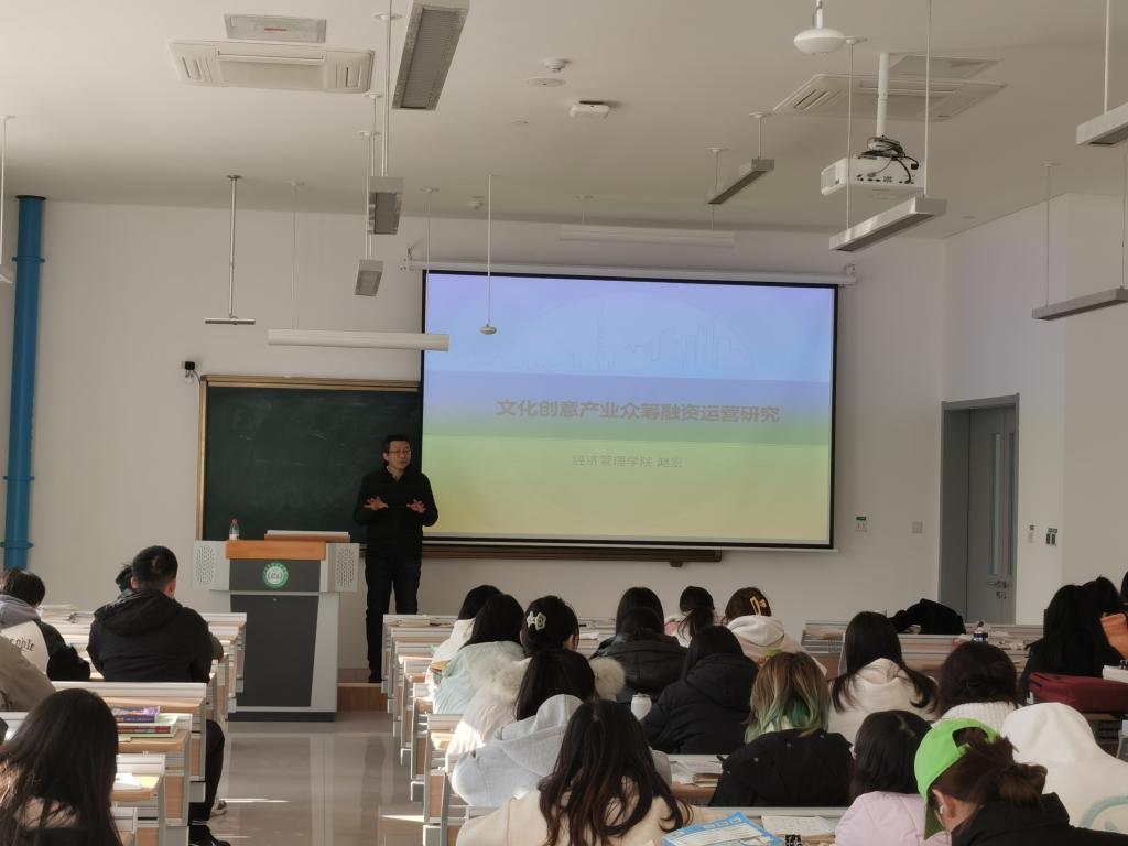 2023年12月5日下午2:00,金融学术讲座在淄博校区文法西楼(B105)举行,金融教研室赵宏副教授作了题为《文化创意产业众筹融资运营研究》的学术讲座,金融工程专业及其他学院对金融有兴趣的同学聆听了本次讲座。