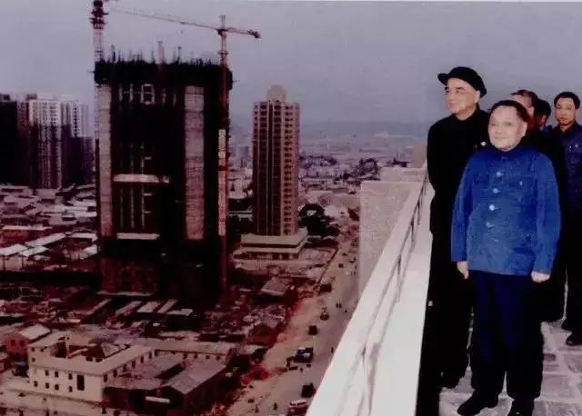 1984年1月24日,邓小平在深圳国商大厦楼顶俯瞰建设中的深圳全貌。