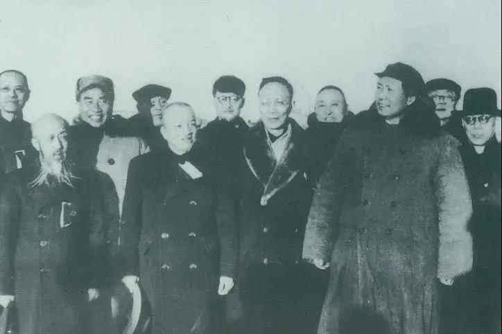 1949年3月,各界人士代表在北京西苑机场同毛泽东、朱德等留影。