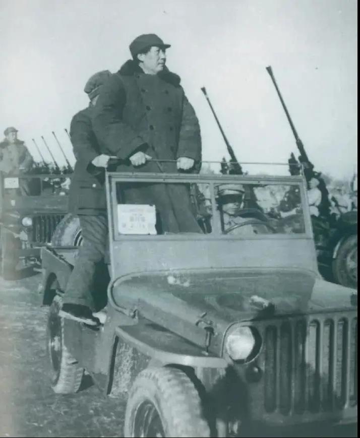 1949年3月25日,毛泽东在北平西苑机场检阅部队。