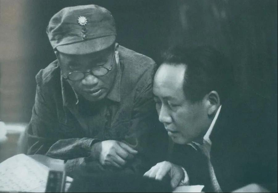 1945年4月,毛泽东和朱德在中国共产党第七次全国代表大会上。