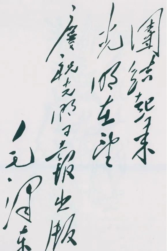 1949年6月16日,毛泽东为庆祝光明日报出版题词:团结起来,光明在望。