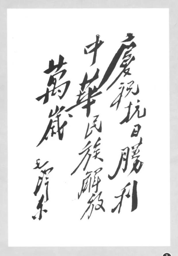 图为毛泽东题写的庆祝抗战胜利题词。