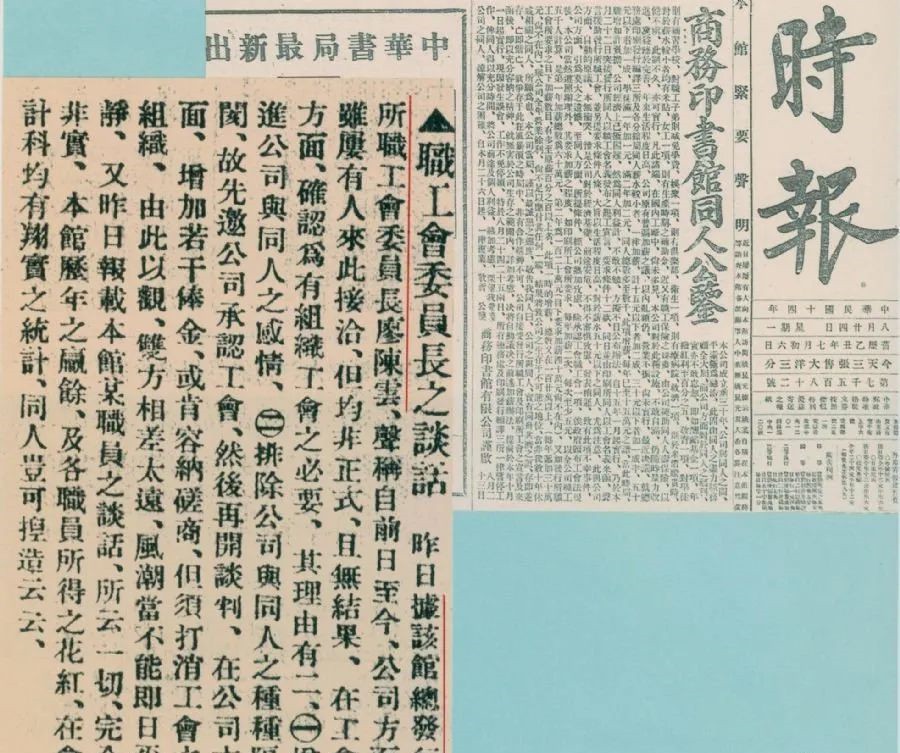 1925年8月24日,上海《时报》刊载的陈云在商务印书馆大罢工第二天发表关于争取组织工会自由作为取得这次罢工斗争胜利的最基本条件的谈话。