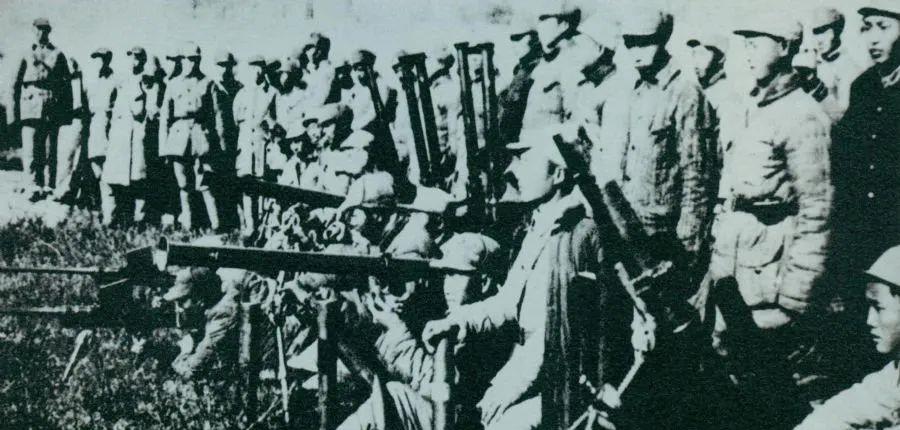 1945年10月至11月,刘伯承、邓小平率部取得了平汉战役的胜利。图为平汉战役参战部队及缴获的武器。