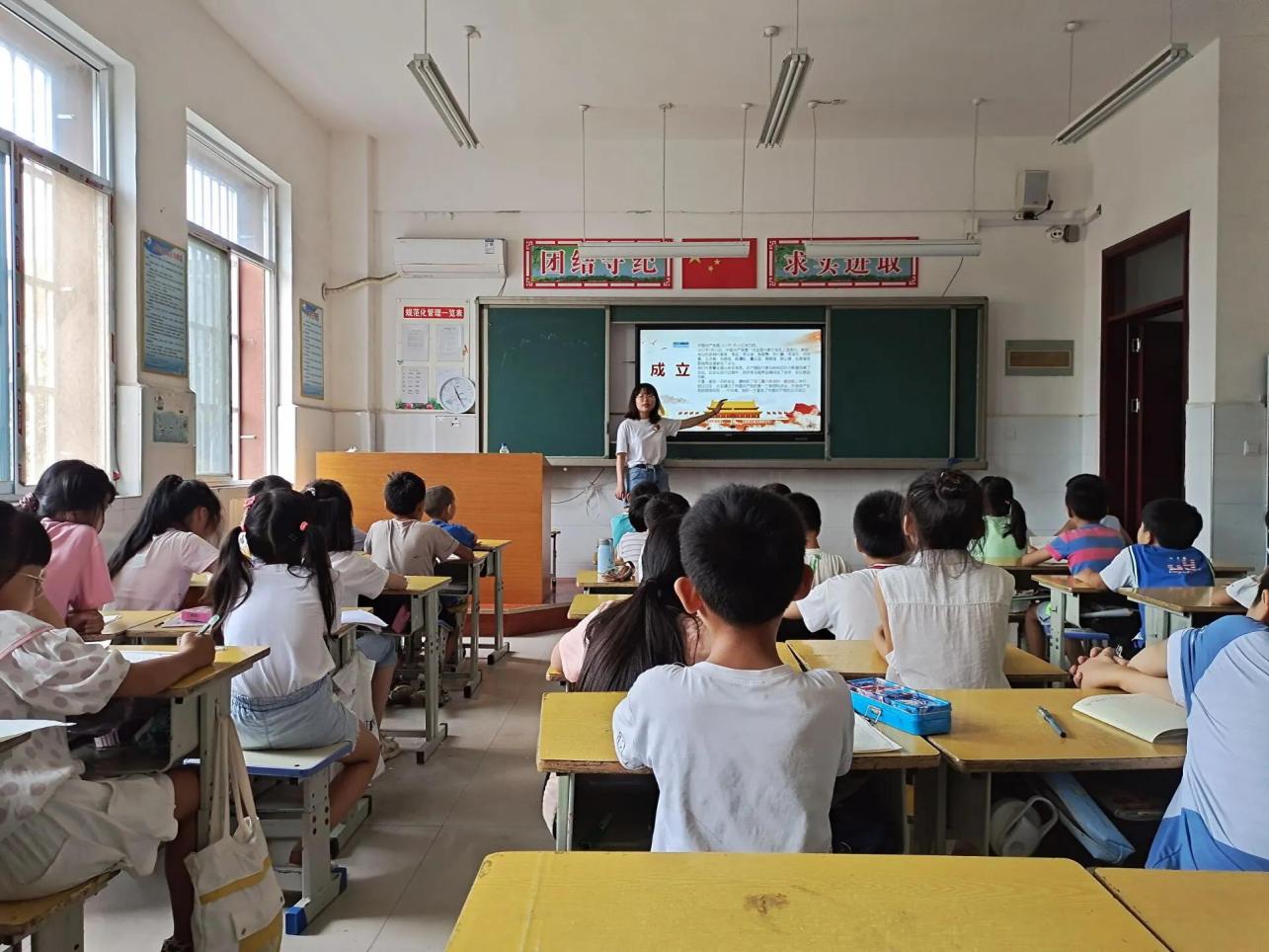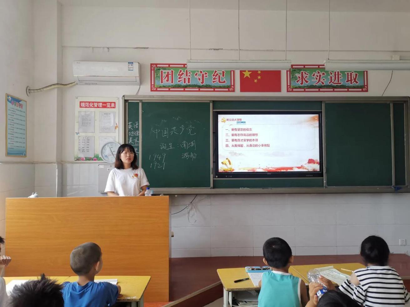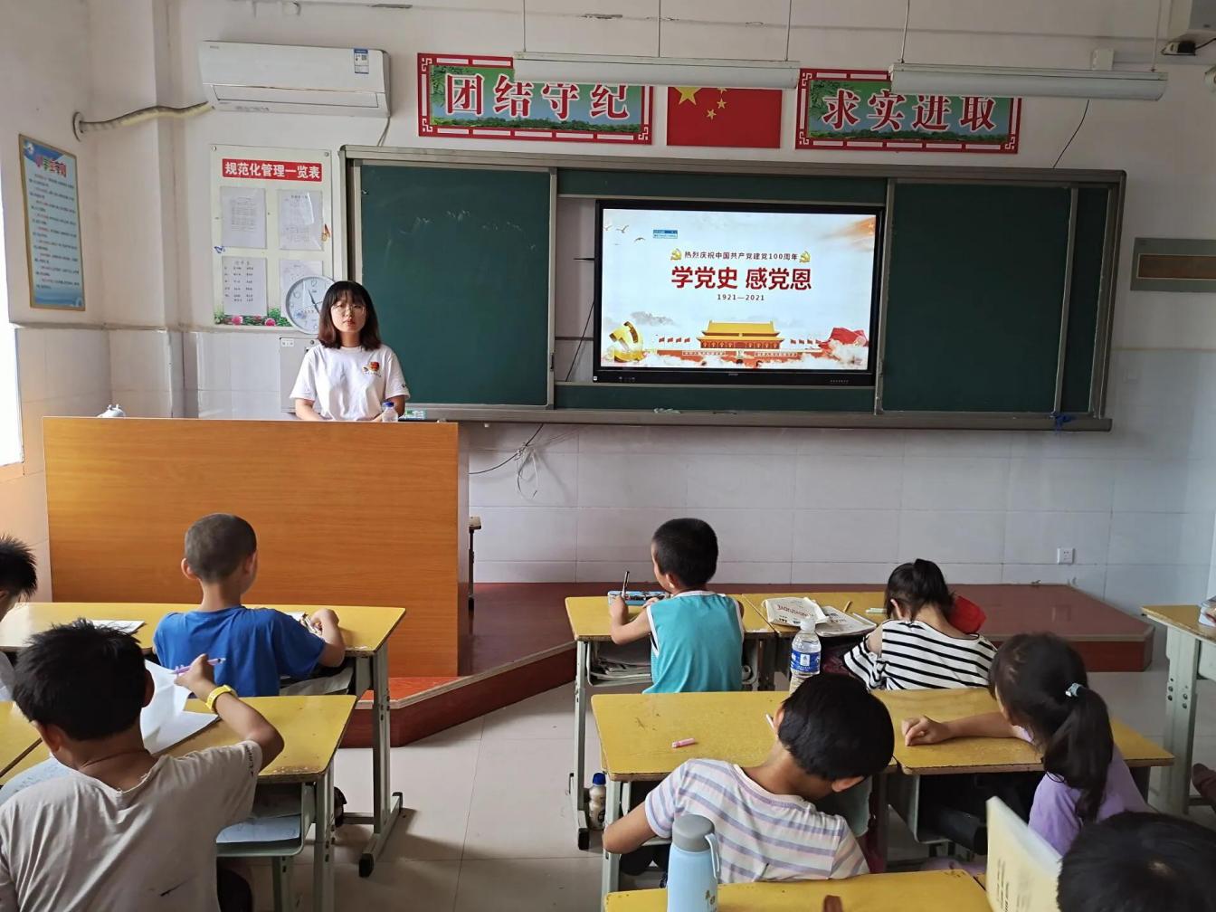 7月23日,437ccm必赢国际官网青春行中国梦暑期支教团的志愿者在菏泽市鄄城县左营镇左南社区小学“小荷学堂”顺利开展了党史学习特色课程,旨在响应党的号召,在建党一百周年之际,为加强学生思想政治教育,深化爱国主义思想,进一步贯彻民族精神教育和理想信念教育,坚定信念永远跟党走,引导学生继承革命先辈的光荣传统,树立报效祖国的宏伟志向。