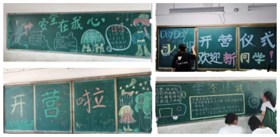 志愿者们准备了开学第一课的主题班会和开营仪式上的黑板报。